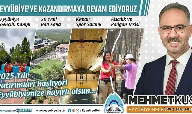Eyyübiye Belediye Başkanı Mehmet Kuş, Gençlik ve Spor Bakanlığına yaptıkları müracaatın meyvelerini vermeye başladığını açıkladı. Eyyübiye ilçesine yeni yatırımların müjdesini veren Kuş, sosyal medya hesabından yapmış olduğu paylaşımda, “Eyyübiye’mize devasa yatırımlarımız devam ediyor. 1 Gençlik Kampı, 20 Halı Saha, 1 Kapalı Spor Salonu ile Atıcılık ve Poligon Tesisi ilçemize şimdiden hayırlı olsun. Gençlik ve Spor Bakanlığımıza yaptığımız müracaat meyvesini verdi. Yatırımlar artarak sürecek. Bu süreçte desteklerini bizlerden esirgemeyen TBMM Başkanvekili, Şanlıurfa Milletvekilimiz Sayın Bekir Bozdağ’a ve AK Parti Şanlıurfa Milletvekillerimize Eyyübiye’miz adına teşekkür ediyorum. Eyyübiye, her şeyin en güzeline layık” ifadelerini kullandı.