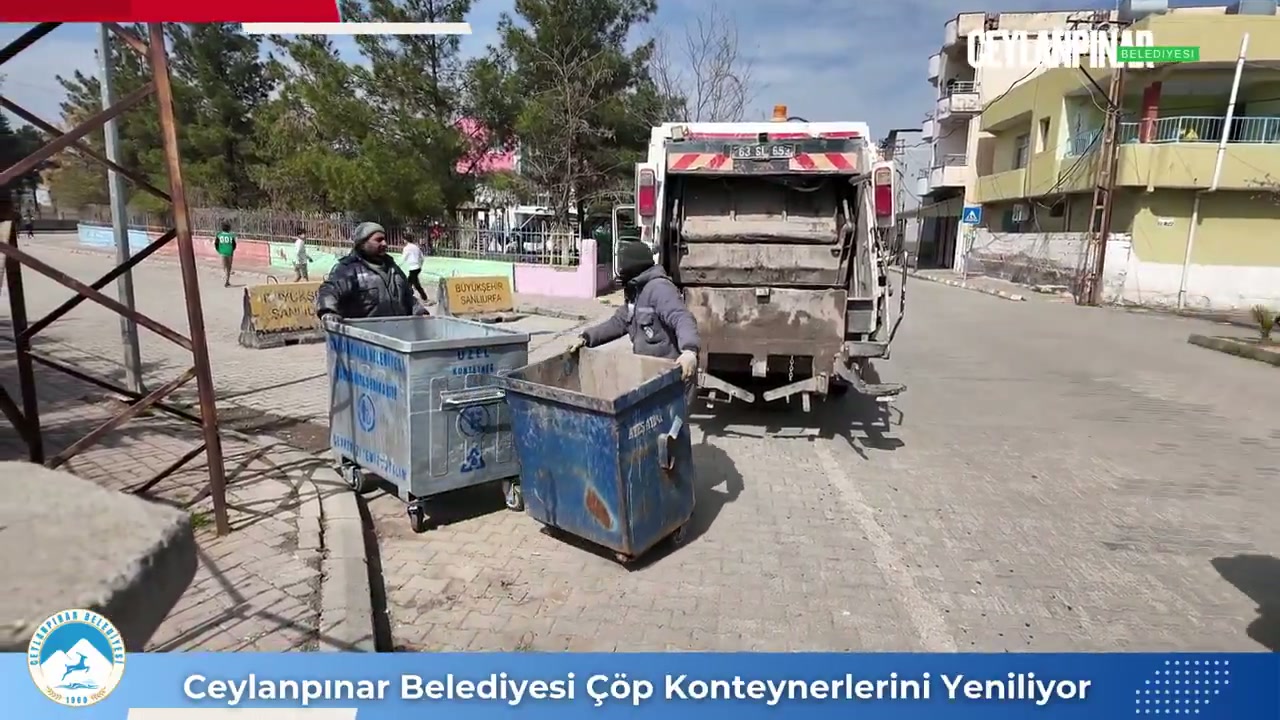 Ceylanpınar Belediyesi, halk sağlığını ve çevreyi korumak amacıyla eskiyen ve yıpranan çöp konteynerlerini yenileriyle değiştirme çalışmalarını sürdürüyor.