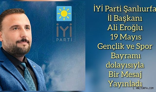 İYİ Parti Şanlıurfa İl Başkanı Ali Eroğlu, 19 Mayıs Atatürk’ü Anma, Gençlik ve Spor Bayramı dolayısıyla bir kutlama mesajı yayımladı.