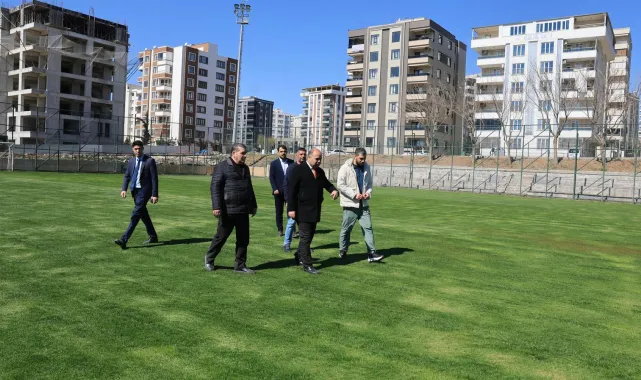 Şanlıurfa'nın Karaköprü ilçesindeki Doğukent Spor Kompleksi'nde yenileme çalışmaları tamamlanan futbol sahası, Belediye Başkanı Nihat Çiftçi tarafından yerinde incelendi.