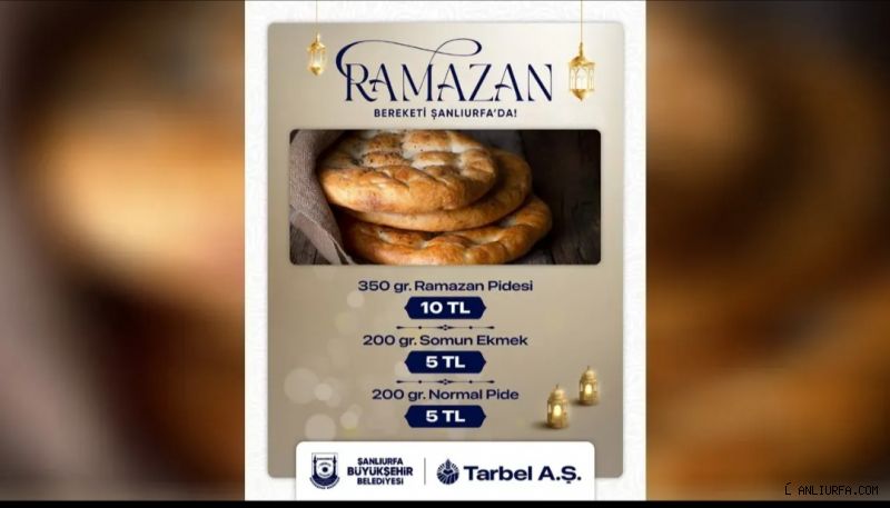 Ramazan ayı yarın itibariyle başlıyor. İslam aleminde heyecanla beklenen Ramazan ayı için Müslümanlar tarafından hazırlıklar yaparken, Şanlıurfa Büyükşehir Belediyesi de Ramazan ayına özgü pide üretecek. Şanlıurfa Büyükşehir Belediyesi’nin bünyesinde bulunan Tarbel A.Ş. tarafından üretilecek olan pideler Halk Ekmek büfelerinden vatandaşların hizmetine sunulacak. Tarbel A.Ş. tarafından üretilecek olan ekmeğin gramajı ve fiyatı ise şöyle olacak: 350 gr. Ramazan Pidesi: 10 TL 200 gr. Somun Ekmek: 5 TL 200 gr. Normal Pide: 5 TL