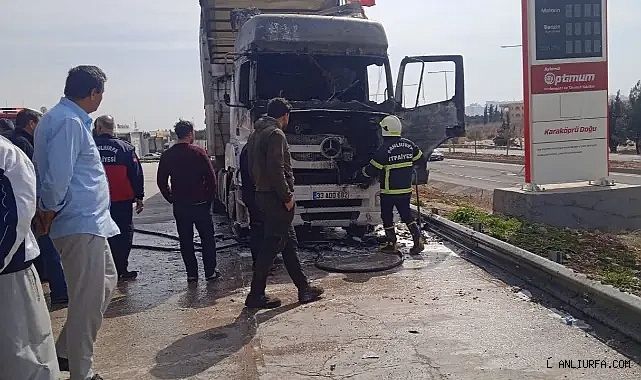 Karaköprü ilçesinde petrol istasyonuna giren TIR alev aldı.