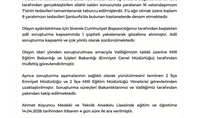 Şanlıurfa Valiliği, 14 Nisan 2026 tarihinde bir basın açıklaması yayımladı. Açıklamanın içeriği hakkında detaylar kamuoyu ile paylaşılacak.