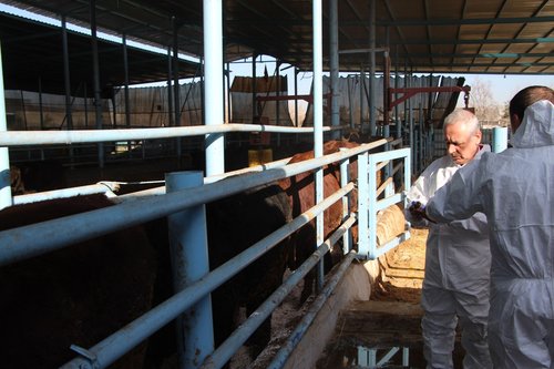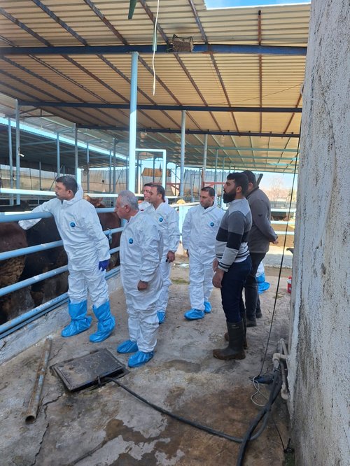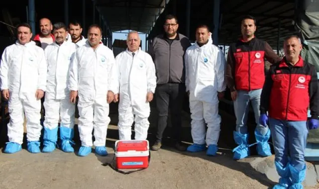 Şanlıurfa İl Tarım ve Orman Müdürü Mehmet Salih Söğüt'ün koordinasyonunda, Hayvan Sağlığı ve Yetiştiriciliği Şube Müdürlüğü ile ilçe müdürlükleri tarafından yürütülen çalışmalar kapsamında, Eyyübiye ilçesinde büyükbaş hayvanlar şap hastalığına karşı aşılandı.Eyyüp Nebi Mahallesi'nde bulunan ve 360 baş kapasiteli BEYMAK Hayvancılık işletmesinde, mevcut 120 büyükbaş hayvana 2026 yılı İlkbahar Şap Aşılama Programı dahilinde aşı yapıldı. Bu çalışma, hayvan sağlığının korunması ve bulaşıcı hastalıklarla etkin mücadelenin bir parçası olarak titizlikle sürdürülüyor.
