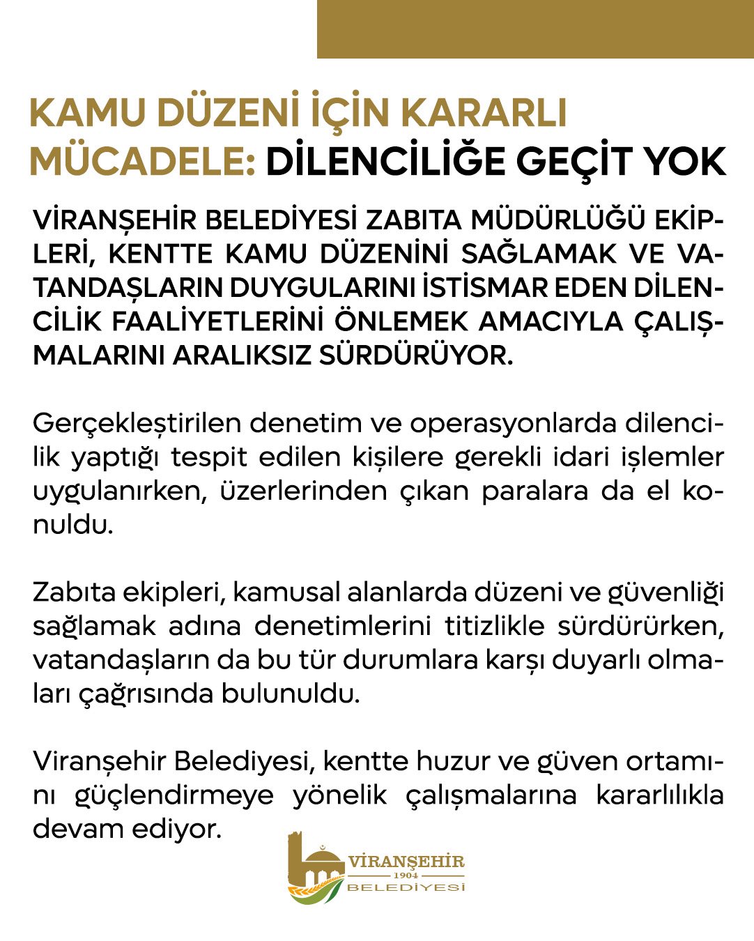 Viranşehir Belediyesi Zabıta Müdürlüğü, 9-22 Nisan tarihleri arasındaki faaliyetlerini içeren e-bültenini yayınladı. Belediyeden yapılan duyuruda, zabıta biriminin bu iki haftalık süreçte gerçekleştirdiği çalışmalar hakkında bilgi verildi.E-bülten, zabıta müdürlüğünün rutin denetimlerinden özel uygulamalarına kadar geniş bir yelpazede yürütülen çalışmaları kapsıyor. Vatandaşların huzur ve güvenliği için yapılan çalışmaların detayları, e-bülten aracılığıyla kamuoyu ile paylaşıldı.