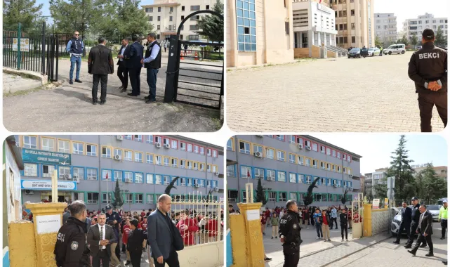Okul güvenliği denetimlerine İlçe Yazı İşleri Müdürü Haşim Yıldız, Viranşehir İlçe Emniyet Müdür Yardımcısı Ebubekir Çeşmeci ve İlçe Millî Eğitim Müdürü Çetin Gören de katıldı.Kaynak: Haber Merkezi